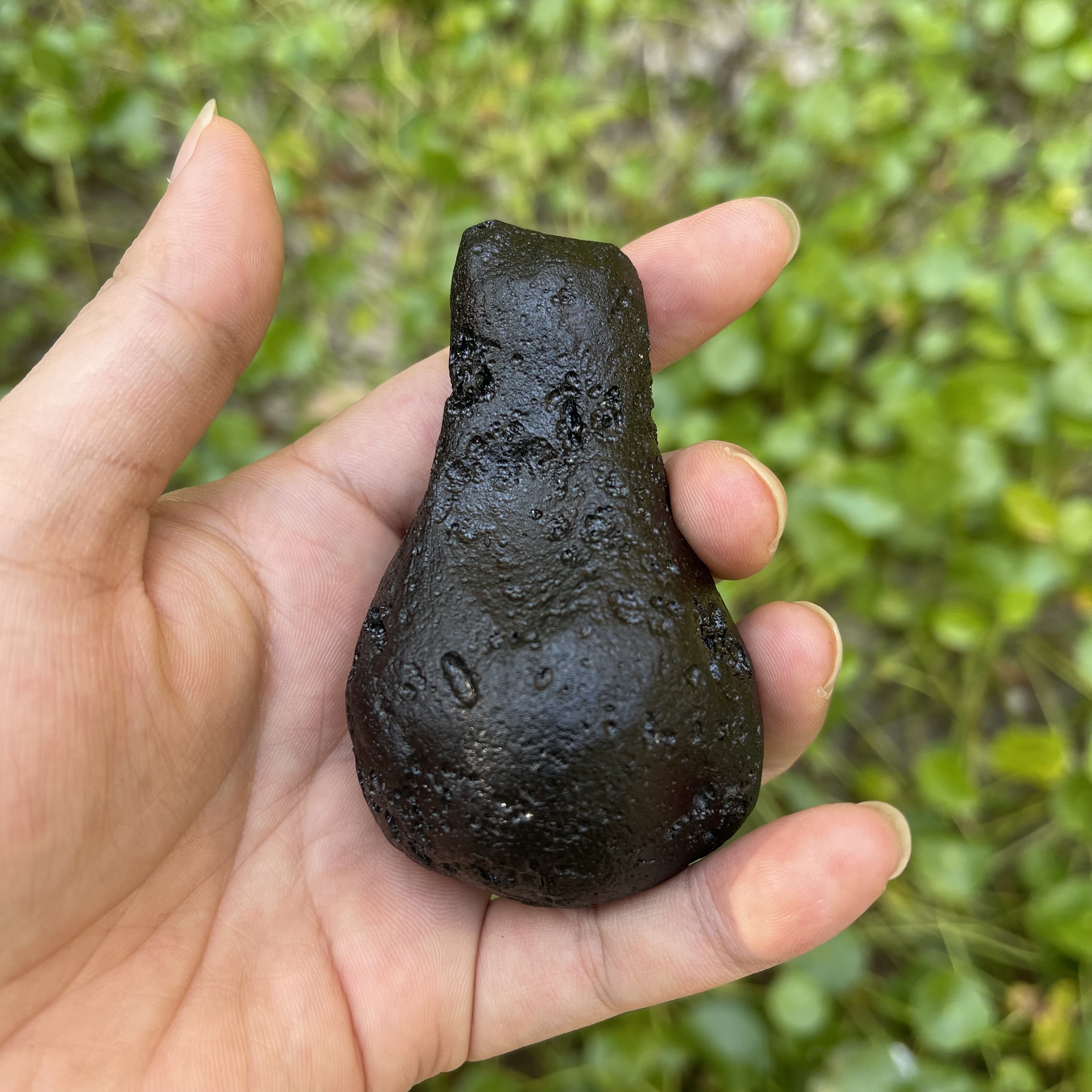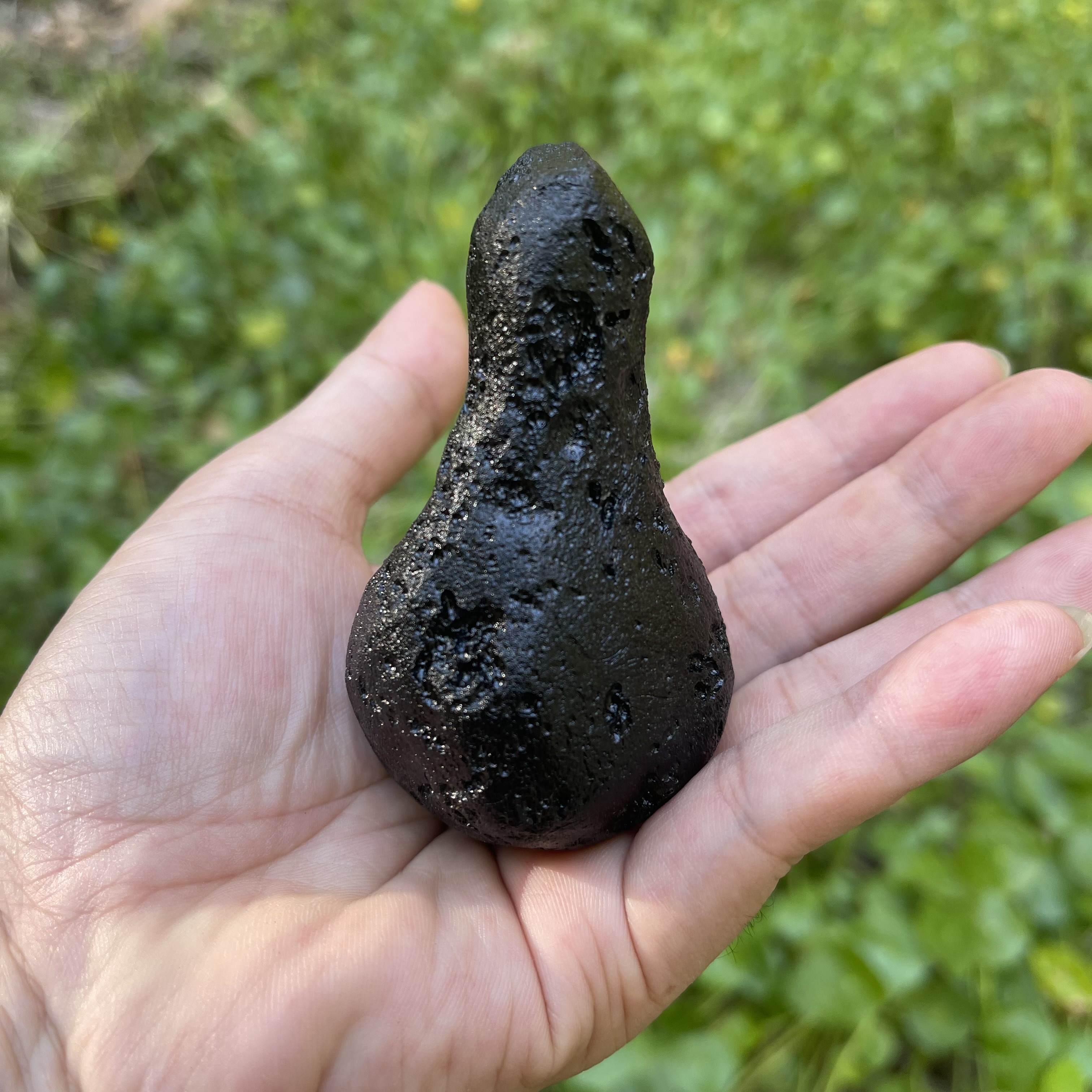 不倒翁形状玻璃陨石雷公墨,一颗奇形观赏石,难得一遇,重约154克。